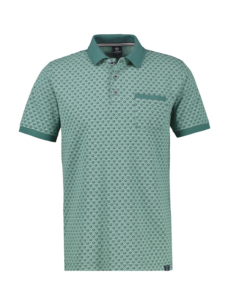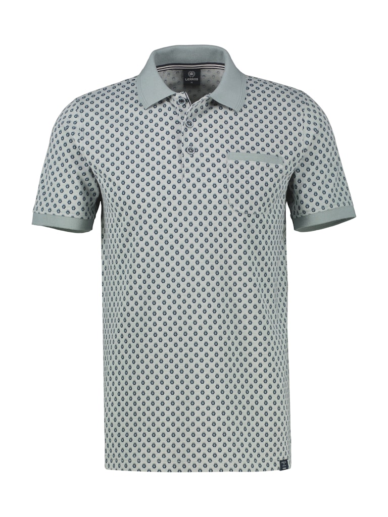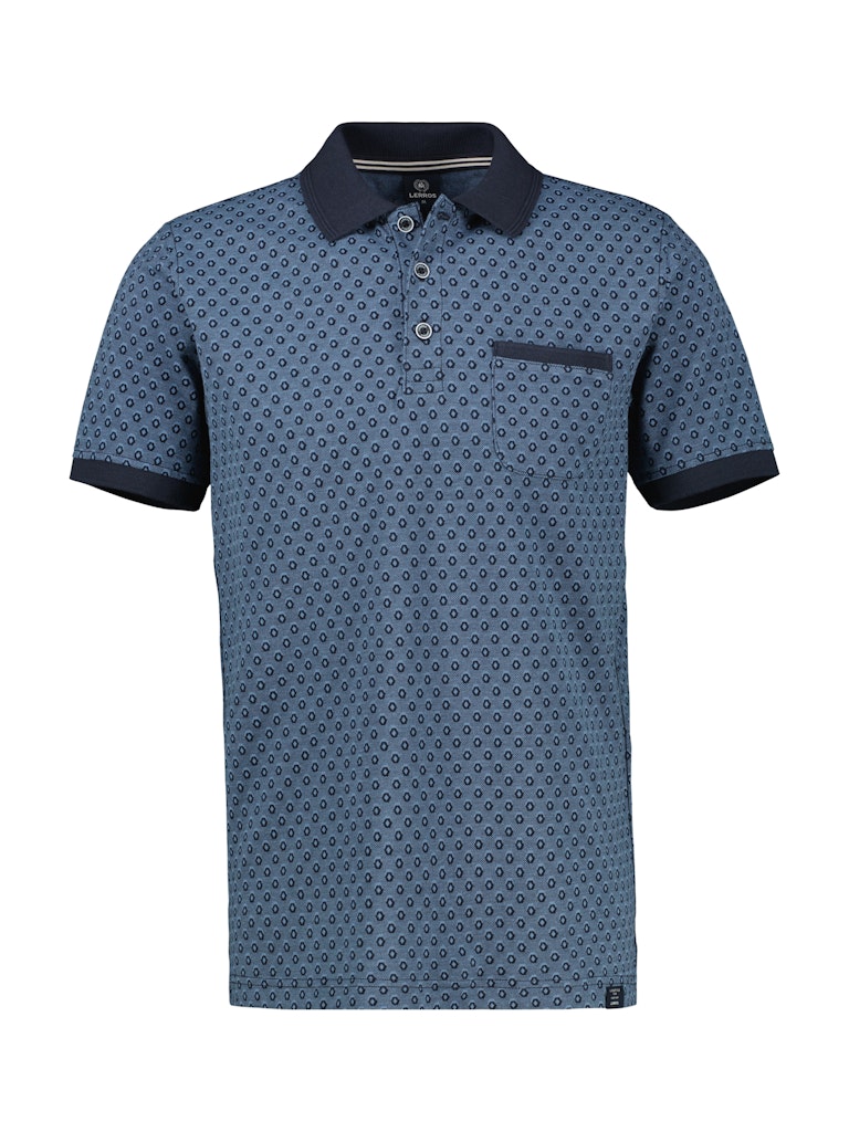 Poloshirt ivan Lerros n een all-over dessin met korte mouwen, polokraag voorzien van korte knoopsluiting en een opgestikte borstzak.