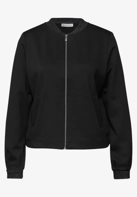 Sweat jacket van Street One met lange mouwen, ritssluiting, opstaande kraag voorzien van glitterdetails, steekzakken en een elastische zoom.