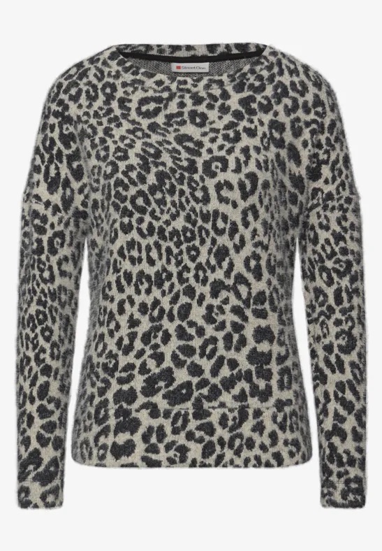 Pluizige trui van Street One in een animal dessin met lange mouwen, verlaagde schoudernaden en een ronde hals. Materiaal: Polyamide 64%| polyester 23%| viscose 13%