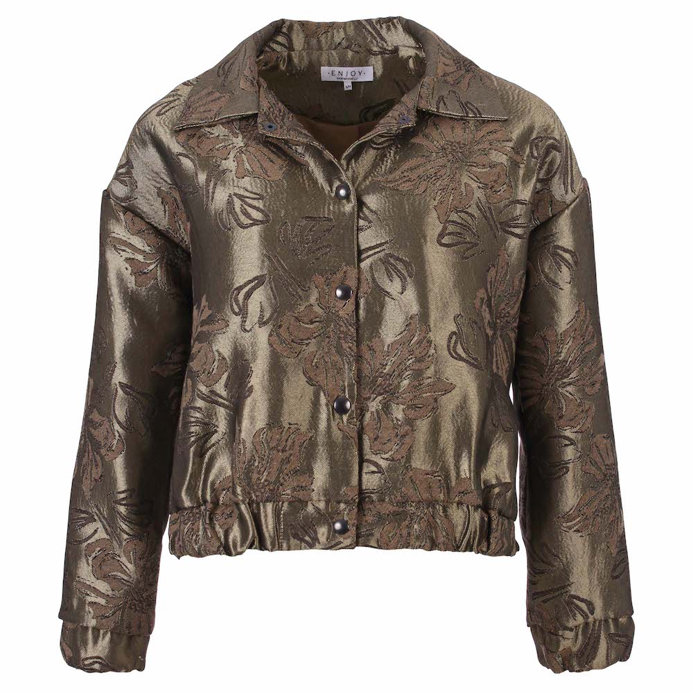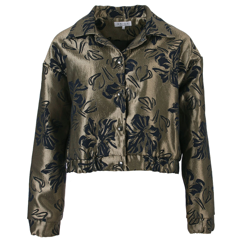 Glanzend jacket van Enjoy in een bloemen dessin met lange mouwen, kraag, knoopsluiting en een elastische zoom. Materiaal: Polyester 60%| katoen 40%