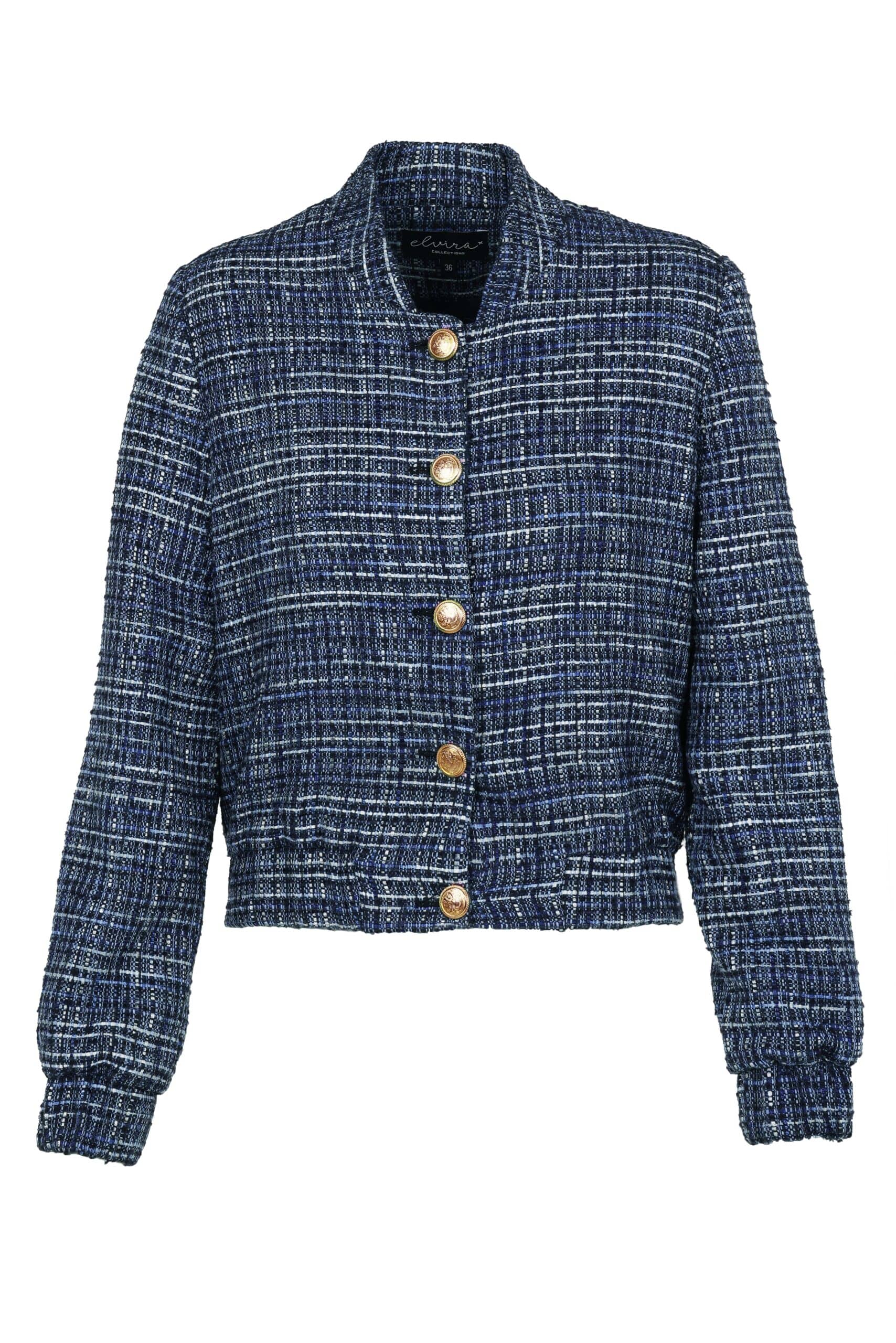 Tweed jacket van Elvira met lange mouwen, knoopsluiting en elastische boorden. Materiaal: Acryl 70%| polyester 20%| katoen 10%