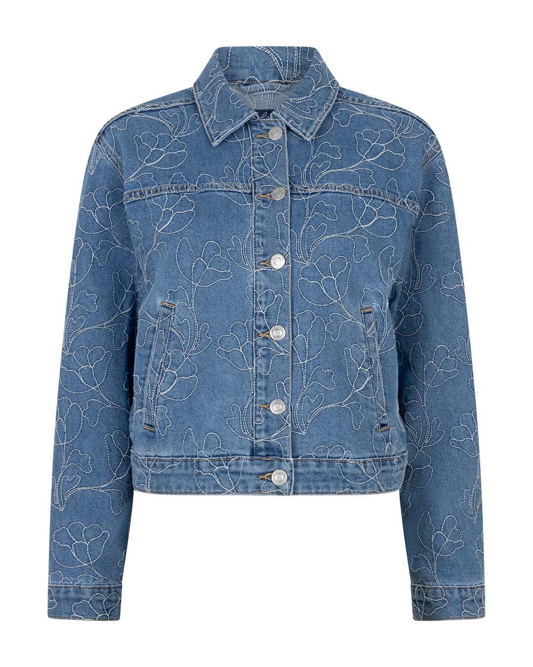 Geborduurd denim jacket van Red Button met lange mouwen, kraag, knoopsluiting en twee steekzakken. Materiaal: Katoen 66%| polyester 30%| viscose 3%| elastan 1%
