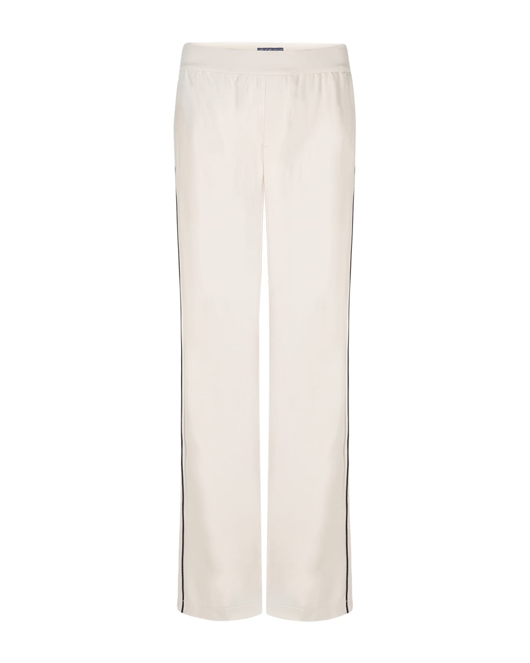 Broek van Red Button in soepele punta stof met wijde pijpen voorzien van contrasterende piping aan de zijkant, hoge taille, elastische tailleband, steekzakken en paspelzakken aan de achterzijde.