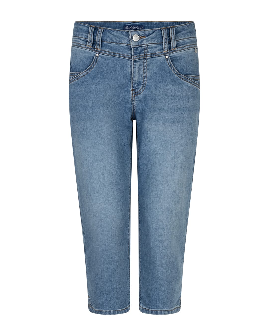 4-pocket capri jeans van Red Button met een knoop- en ritssluiting en een korte split in de pijpen. Materiaal: Katoen 825| polyester 11%| viscose 5%| elastan 2%