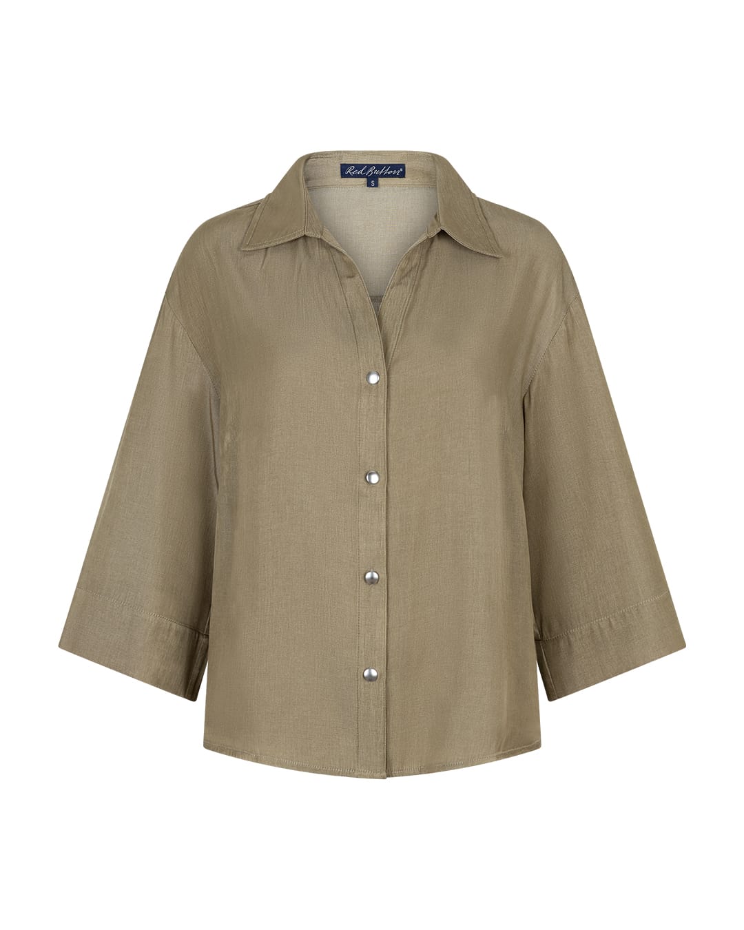 Blouse van Red Button met driekwart wijde mouwen, verlaagde schoudernaden, kraag, knoopsluiting en een rugplooi. Materiaal: Viscose 50%| polyester 50%