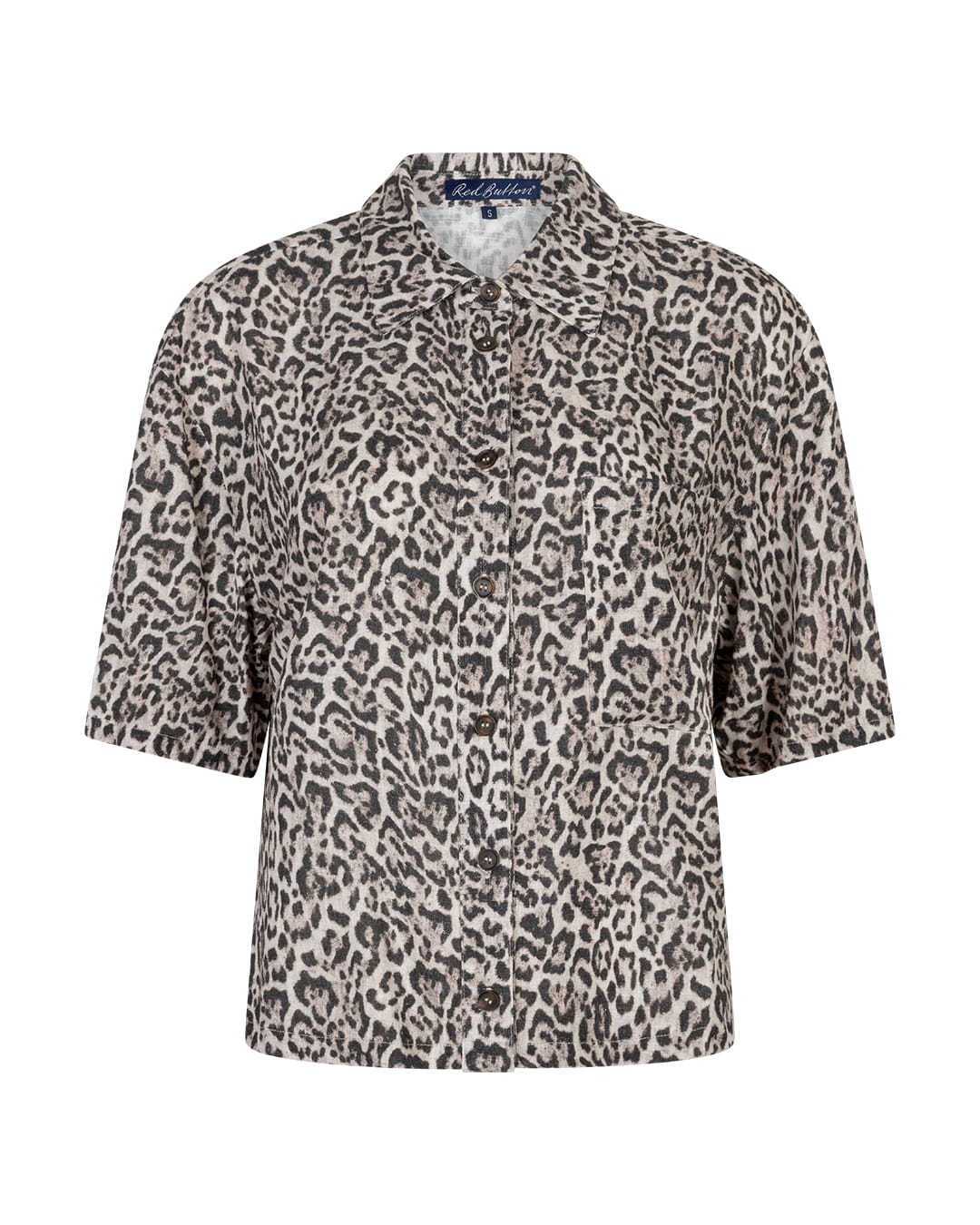 Blouse van Red Button in een animal dessin met korte mouwen, kraag en een knoopsluiting. Materiaal: Viscose 85%| linnen 5%