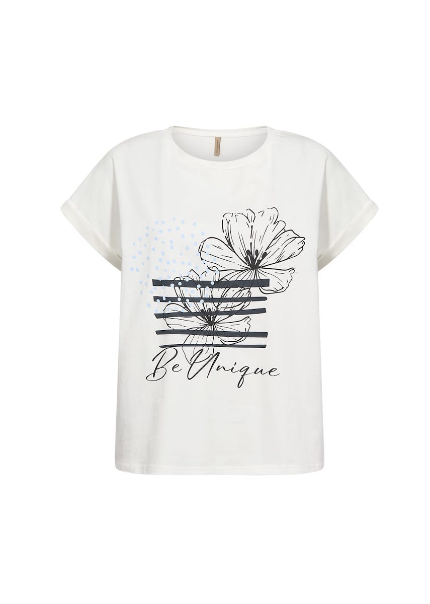 T-shirt van Soya Concept met korte mouwen, ronde hals en een print aan de voorzijde.