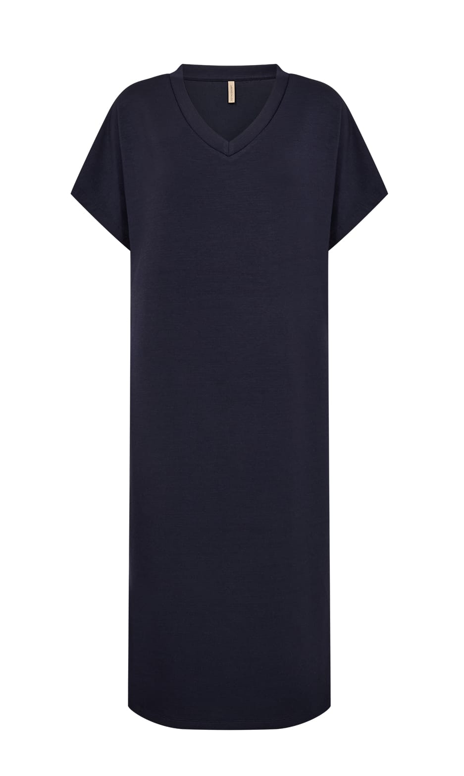Jurk van Soya Concept met korte aangeknipte mouwen, V-hals en een split in de zijnaden.