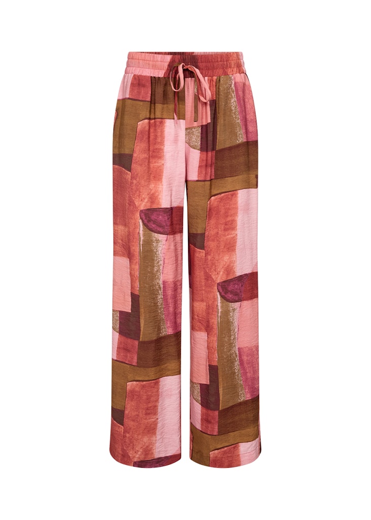 Broek van Soya Concept in een grafisch dessin met wijde pijpen en een elastische tailleband voorzien van trekkoord.