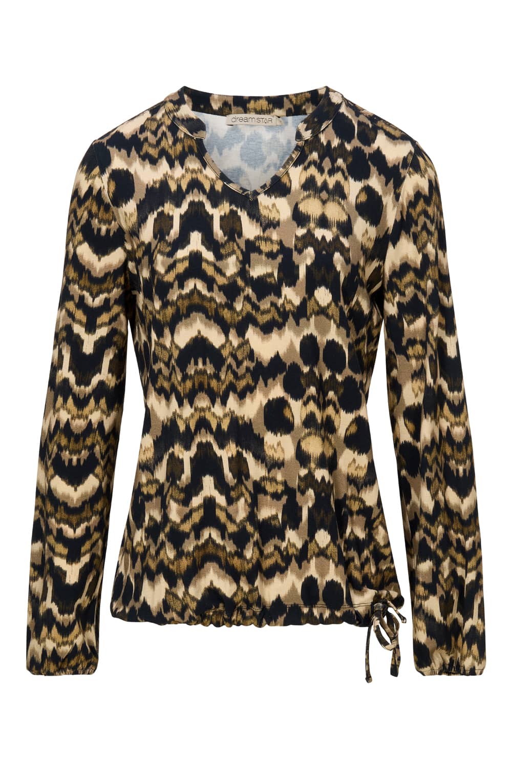 Shirt van Dreamstar in een all-over dessin met lange mouwen, opstaande kraag, V-hals en een trekkoord in de zoom.