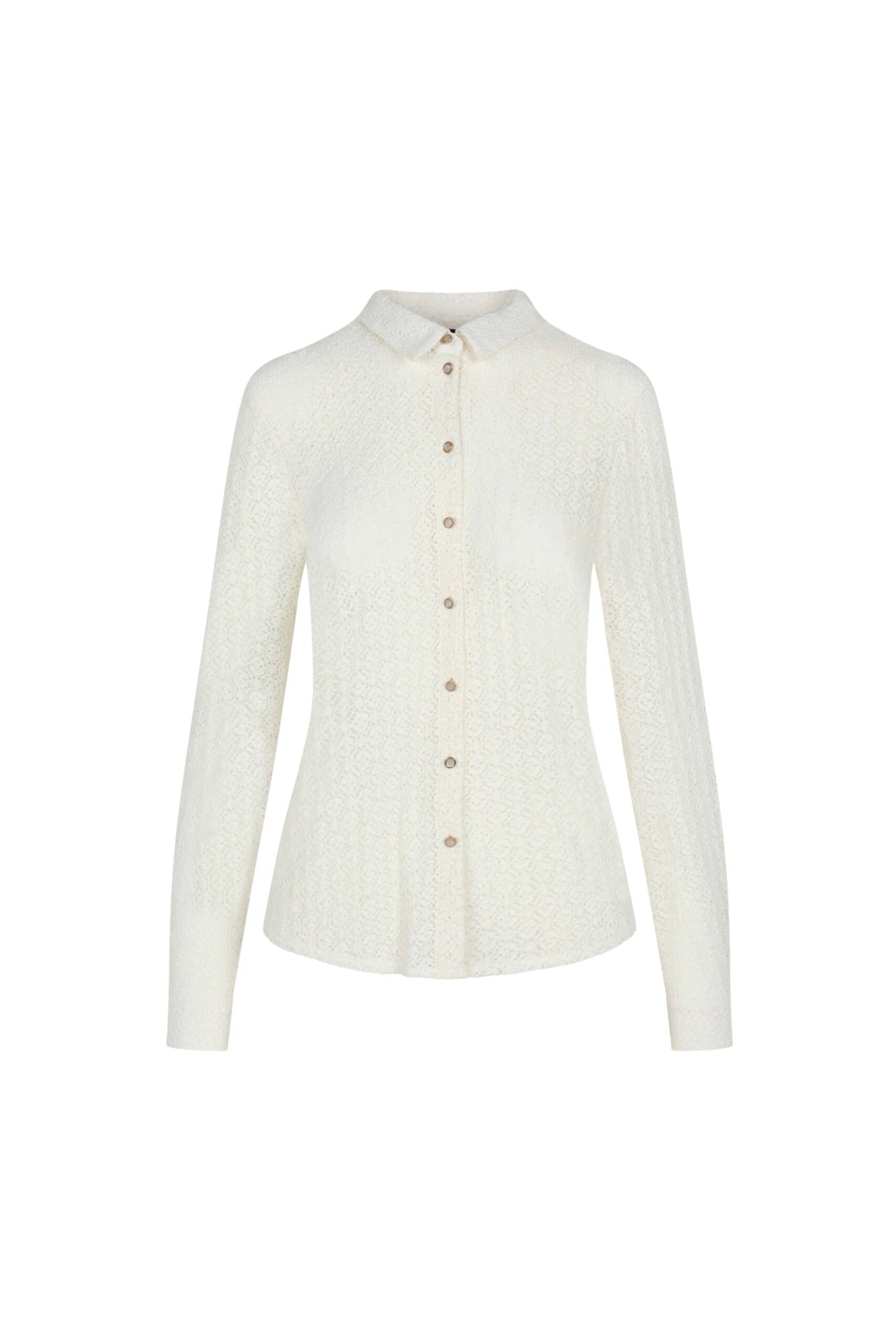 Kanten blouse van Elvira met lange mouwen, klassieke kraag en knoopsluiting. Materiaal: Polyester 95%| elastan 5%