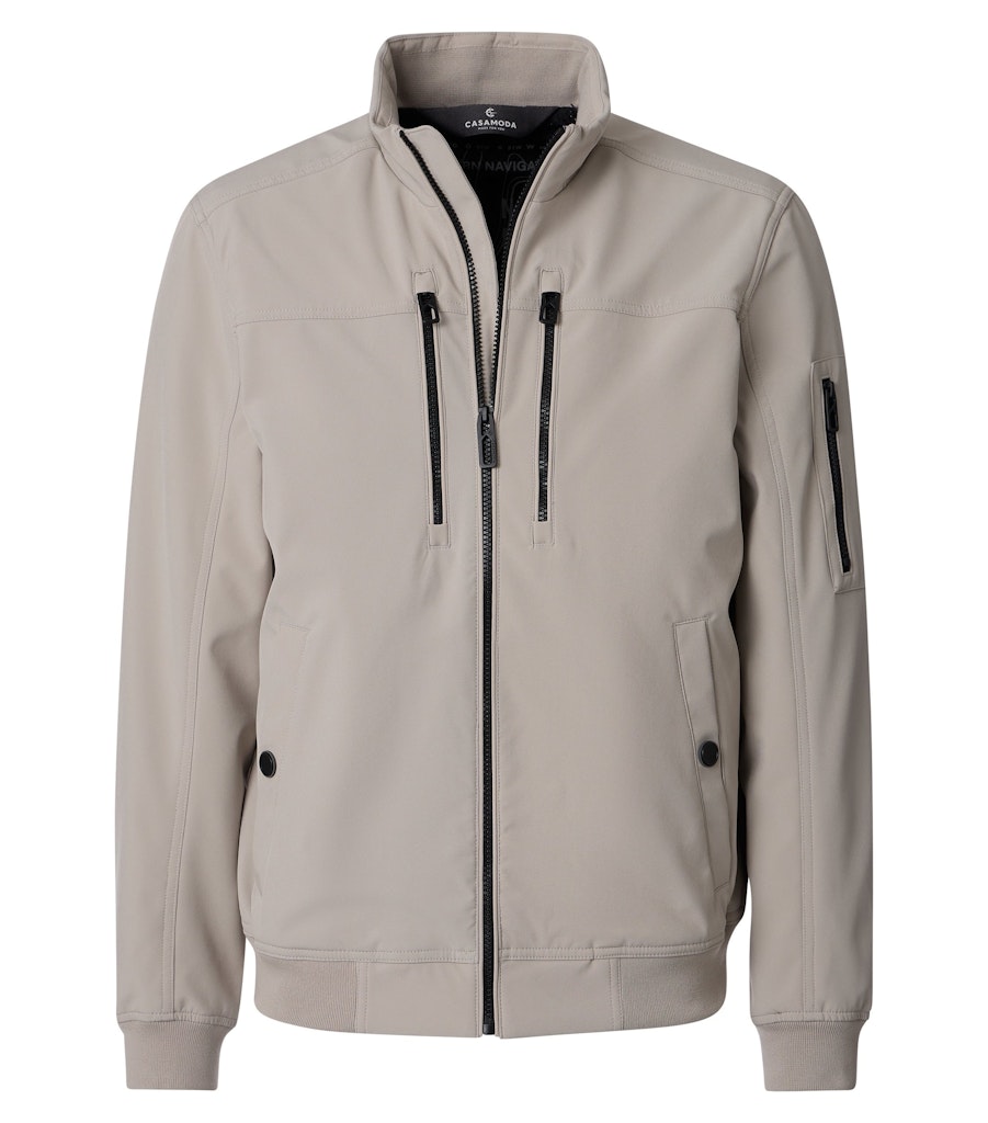 Jack van Casa Moda met een ritssluiting, opstaande kraag, steekzakken, twee ritszakken op de borst en ribgebreide boorden. Materiaal: Polyester 92%| elastan 8%