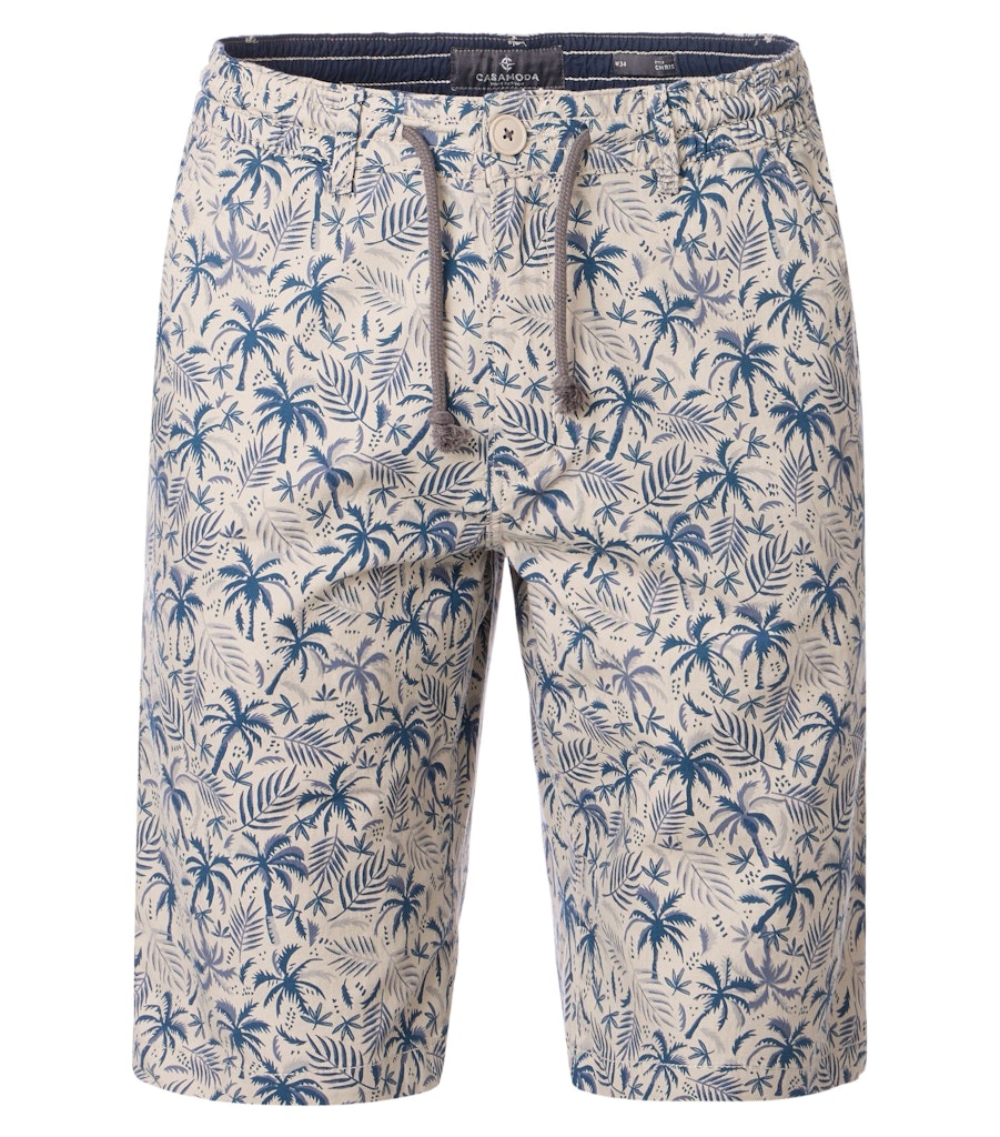 Short van CASAMODA in een palmbomen print met een knoop- en ritssluiting, steekzakken, twee paspelzakken aan de achterzijde en een elastische tailleband voorzien van trekkoord.