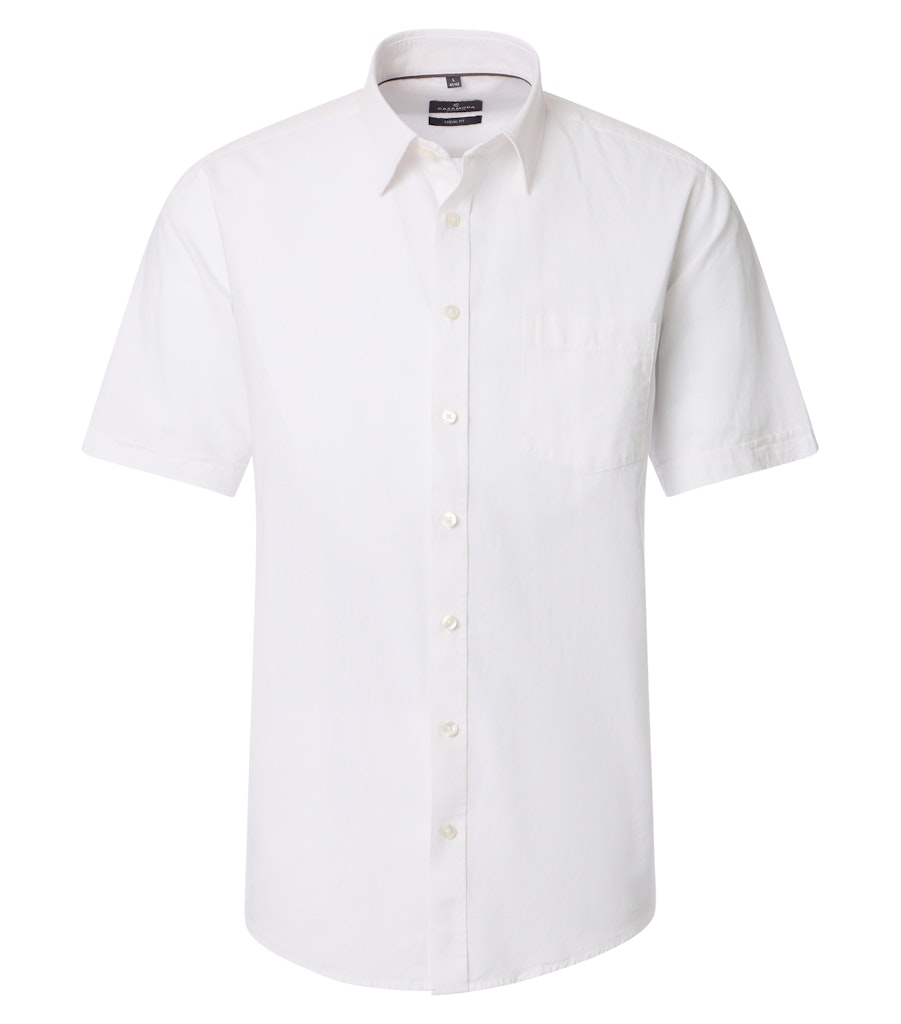 Casual fit overhemd van Casa Moda met korte mouwen, kent kraag, knoopsluiting en een opgestikte borstzak. Materiaal: Katoen 70%| linnen 30%