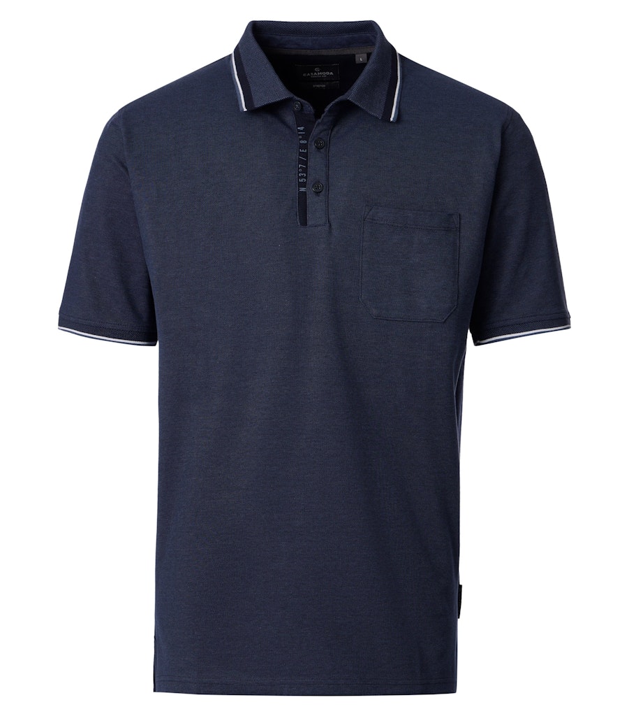 Polo van Casa Moda met korte mouwen, polokraag voorzien van korte knoopsluiting, contrasterende details en een opgestikte borstzak.