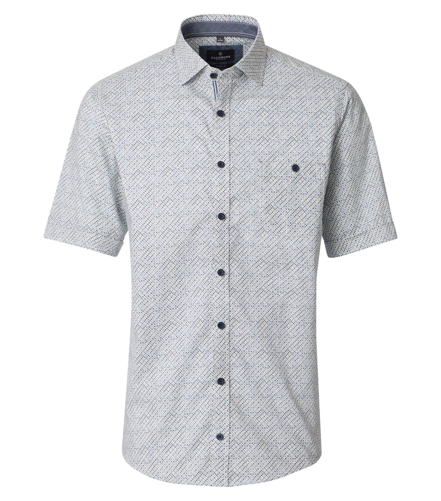 Casual fit overhemd van Casa Moda in een subtiel dessin met korte mouwen, kent kraag, knoopsluiting en een opgestikte borstzak. Materiaal: Katoen 100%