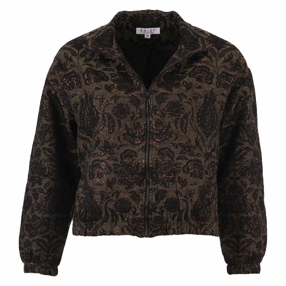 Jacket van Enjoy in een all-over dessin voorzien van subtiele glansdraad met lange mouwen, opstaande kraag, ritssluiting en een elastische boord aan de onderzijde.