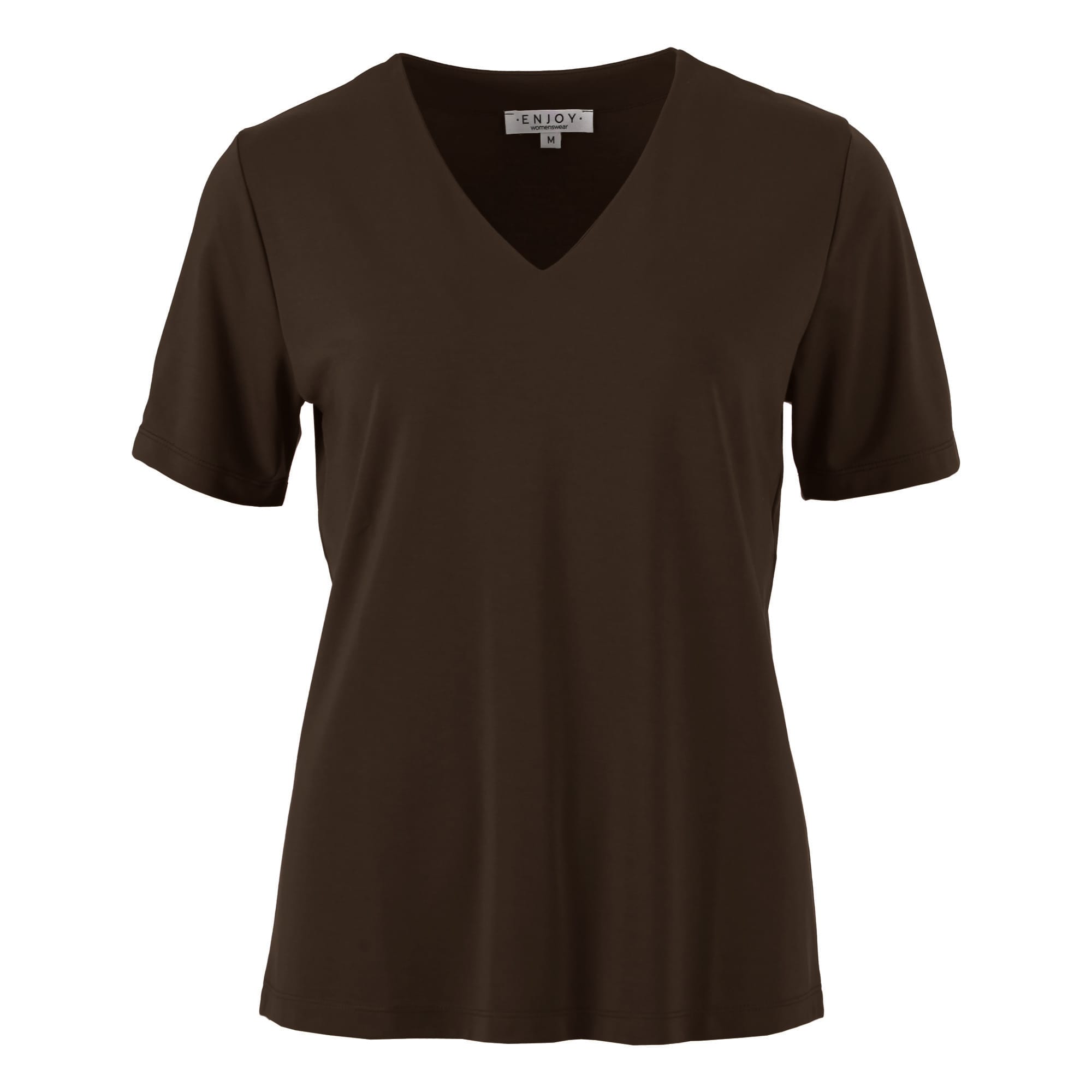 T-shirt van Enjoy met korte mouwen en een V-hals. Materiaal: Rayon 60%| nylon 31%| spandex 9%
