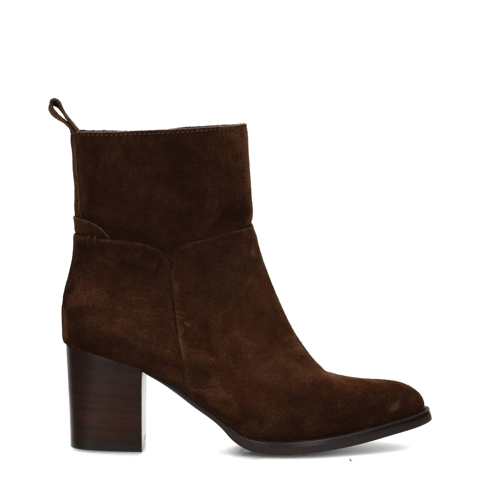 Suède enkellaars Fleur van PS. Poelman met een ritssluiting, stevige blokhak en een schachthoogte van 15 cm en wijdte van 12 cm.