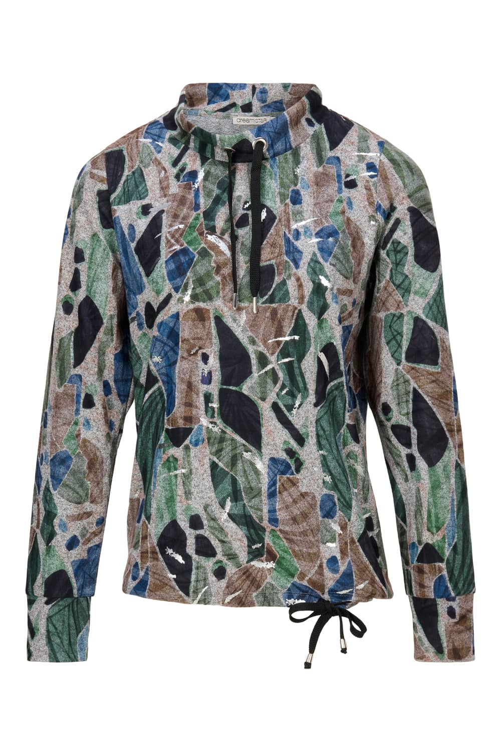 Trui van Dreamstar in een all-over dessin met lange mouwen, opstaande kraag voorzien van trekkoord en een trekkoord in de zoom. Materiaal: Polyester 95%| elastan 5%