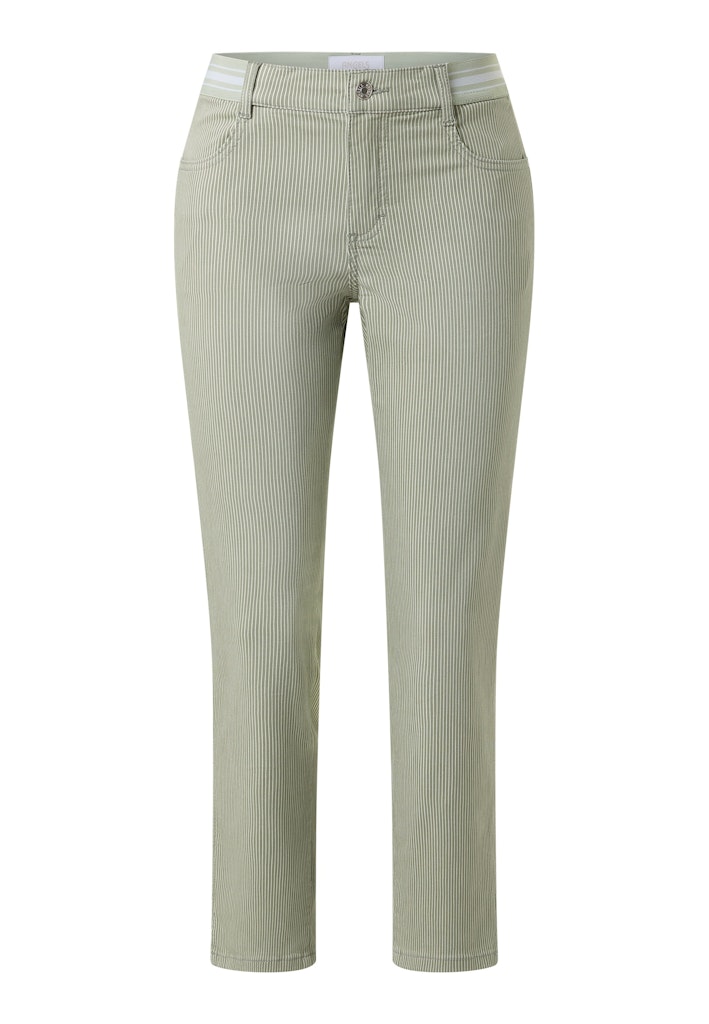 Gestreepte enkellange 4-pocket broek van Angels met een knoop- en ritssluiting en een contrasterende tailleband. Materiaal: Katoen 89%| polyester 8%| elastan 3%