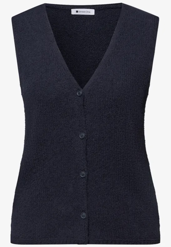 Gebreid gilet van Street One met een V-hals en een knoopsluiting. Materiaal: Katoen 75%| polyester 25%
