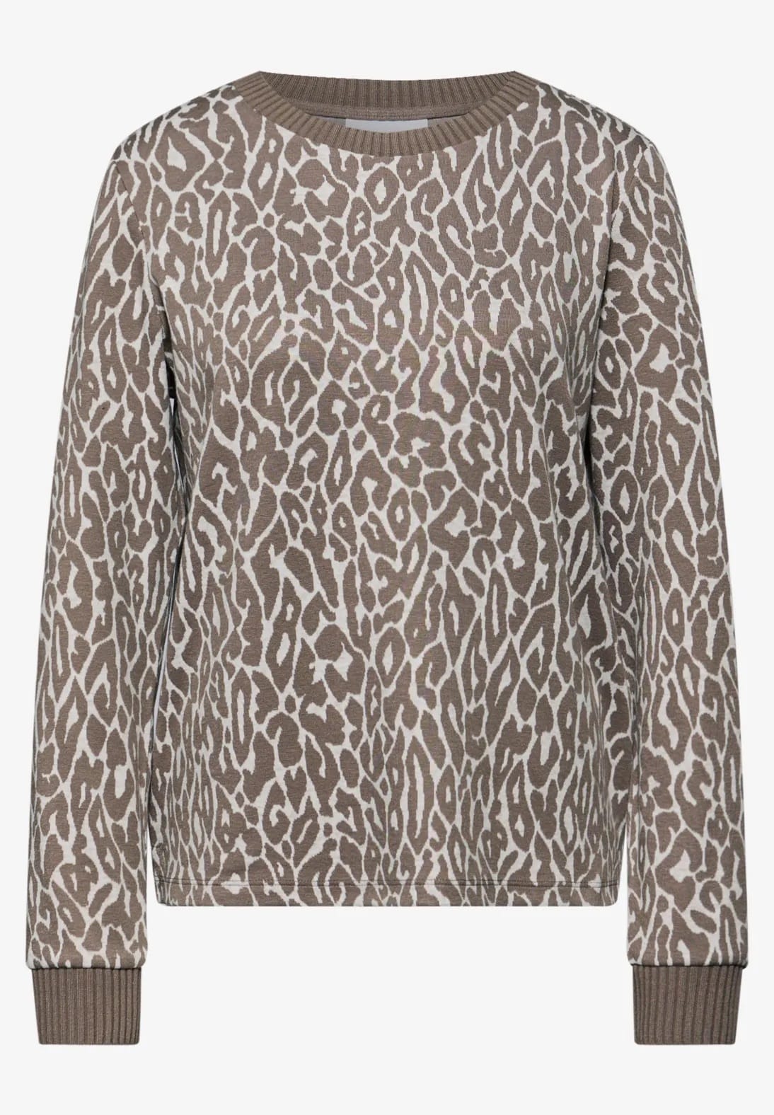 Jacquard shirt van Street One in luipaard dessin met lange mouwen, ronde hals en ribboorden. Materiaal: Polyester 64%| viscose 33%| elastan 3%