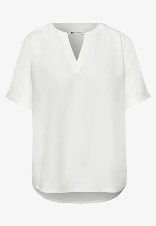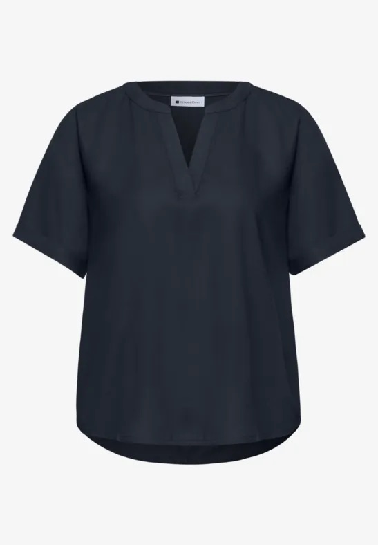 Blouse van Street One met een V-hals, korte mouwen voorzien van omslag en een afgeronde zoom. Materiaal: Viscose 100%