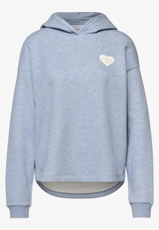 Gemêleerde hoodie van Street One Studio met lange mouwen, capuchon, hartvormig logo op de linkerborst en een iets langere achterzijde.