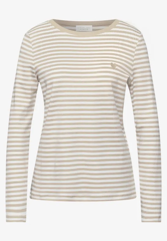 Gestreept shirt van Street One Studio met lange mouwen, ronde hals en een geborduurd hartje op de linkerborst.