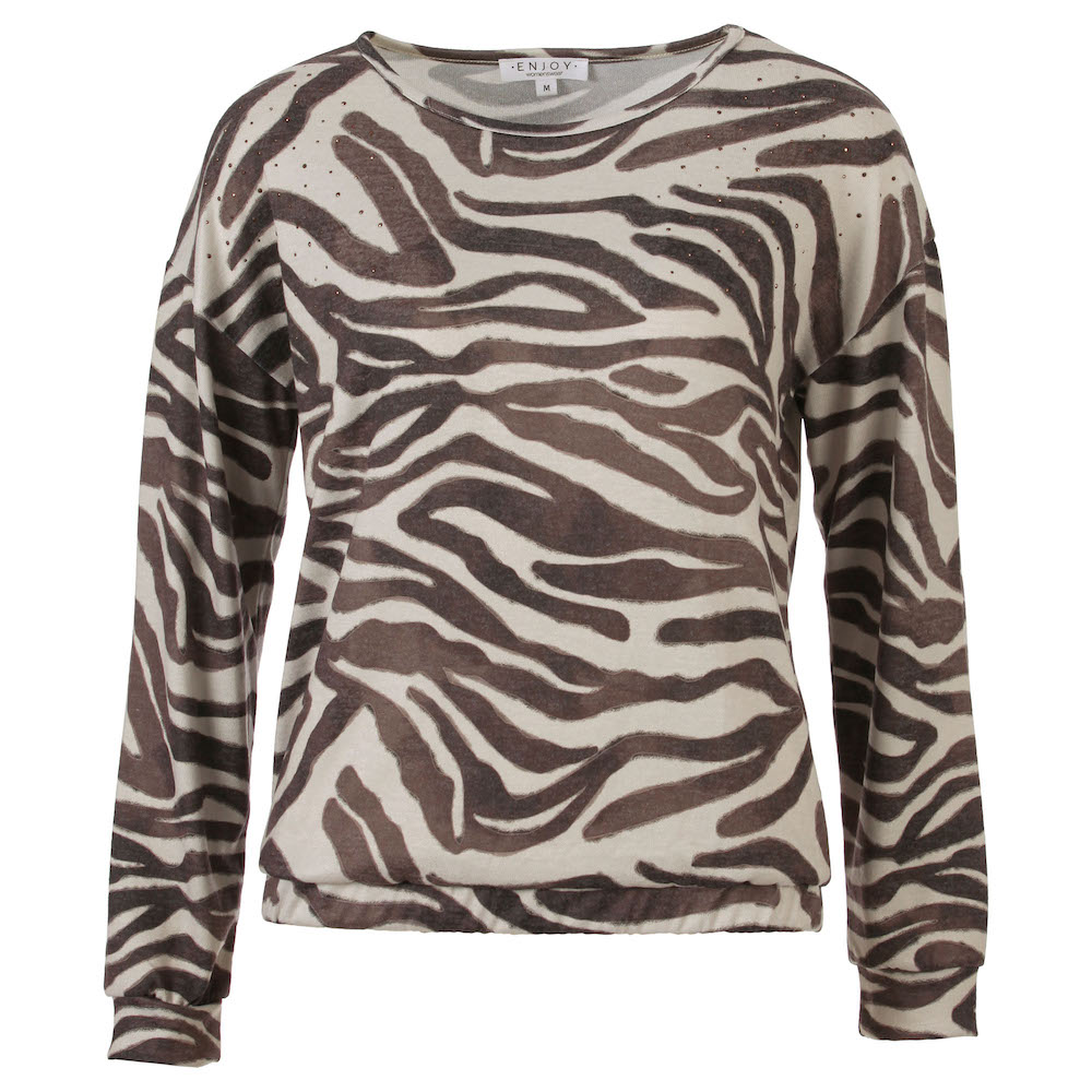 Blouson van Enjoy in een animal dessin voorzien van strass-steentjes aan de bovenzijde met lange mouwen, verlaagde schoudernaden, ronde hals en een elastische zoom.