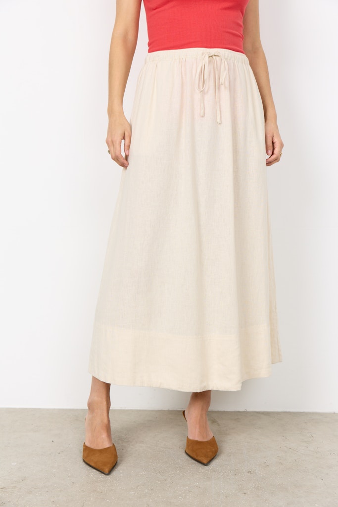 Lange linnen rok van Soya Concept met een elastische tailleband voorzien van trekkoord. Materiaal: Linnen 55%| viscose 45%