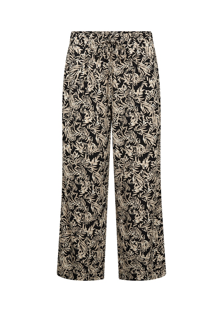 Enkellange broek van Soya Concept in een all-over dessin met wijde pijpen, steekzakken en een elastische tailleband voorzien van trekkoord.