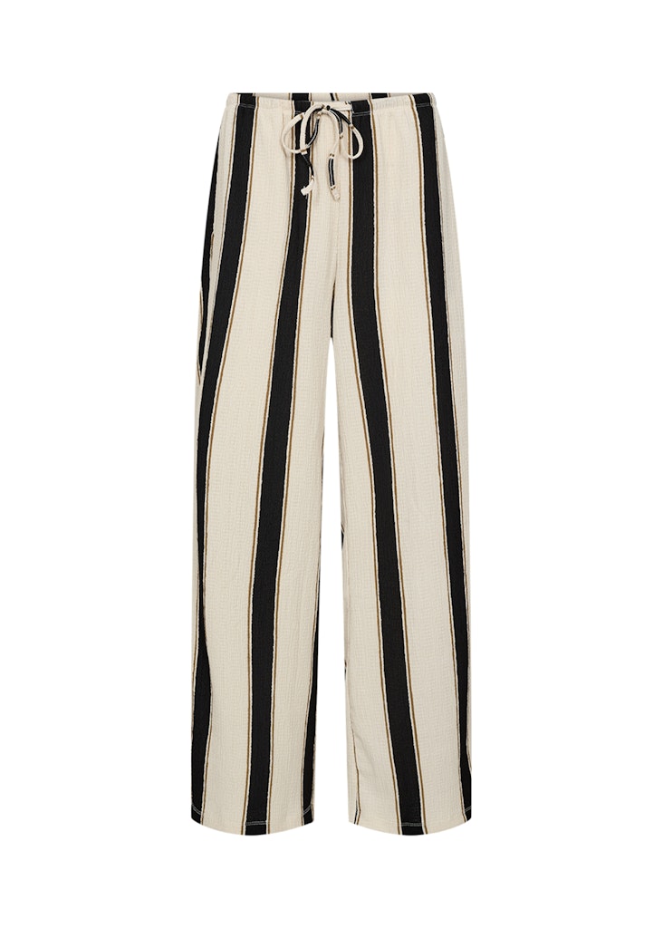 Gestreepte broek van Soya Concept met wijde pijpen, steekzakken en een elastische tailleband voorzien van trekkoord.