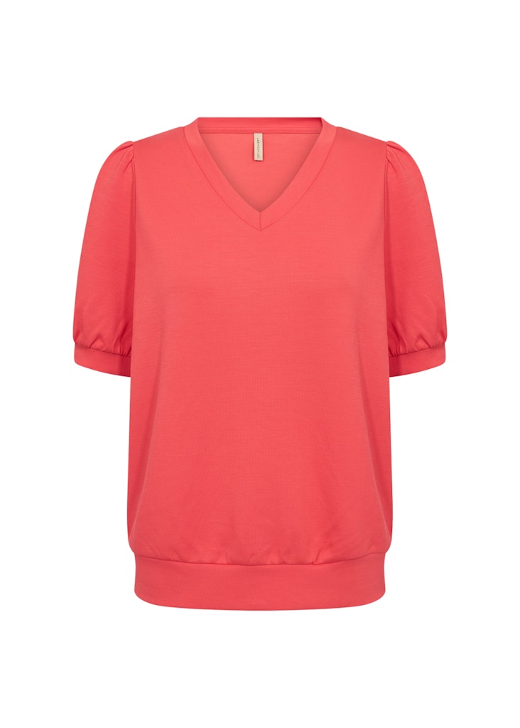 Shirt van Soya Concept met korte pofmouwen, V-hals en elastische boorden.