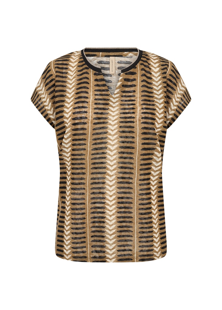 Shirt van Soya Concept in een all-over dessin met korte aangeknipte mouwen en een ronde hals voorzien van V-inkeping.