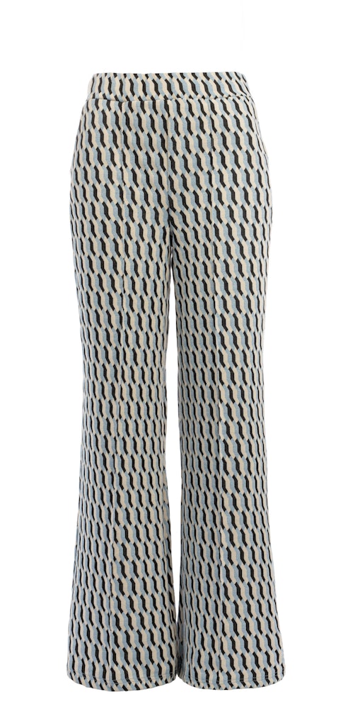 Lurex jacquard broek van N.E.D. in een all-over dessin met wijde pijpen, steekzakken en een elastische tailleband.