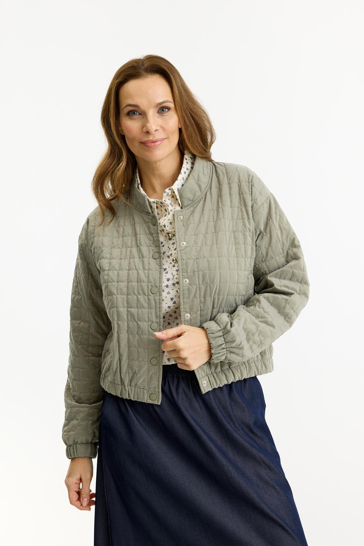 Doorgestikte jacket van In Front met lange mouwen, opstaande kraag, drukknoopsluiting, steekzakken, geborduurde print aan de achterzijde en een elastische zoom. Materiaal: Polyestre 65%| katoen 35%