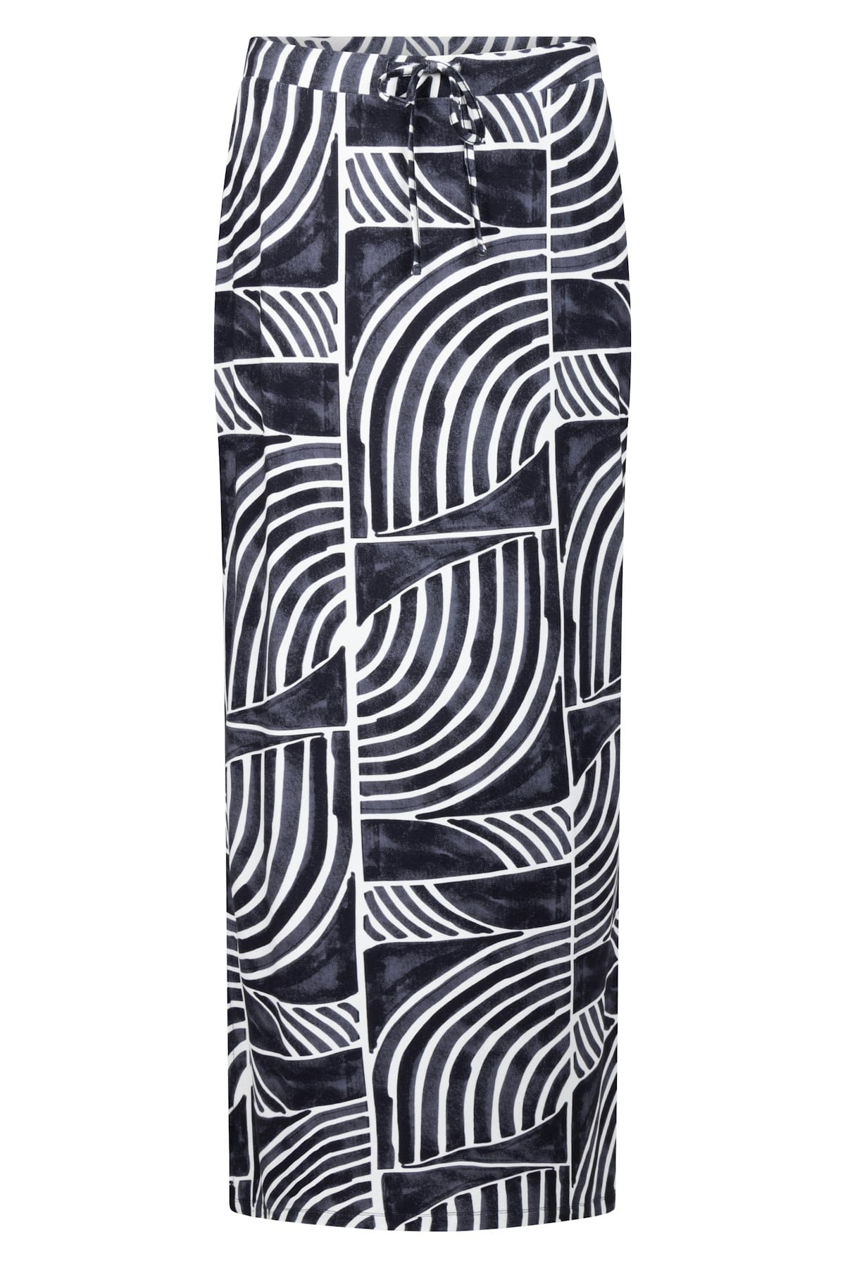 Lange rok van Zoso in een grafisch dessin met zijsplitten en een elastische tailleband voorzien van trekkoord. Materiaal: Viscose 95%| elastan 5%