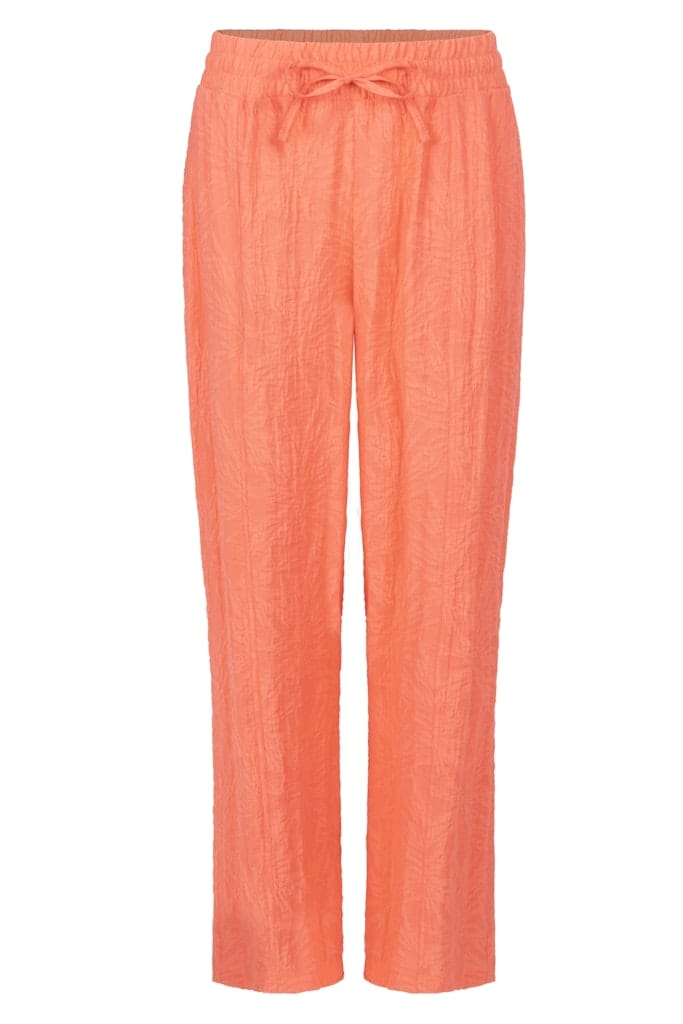 Broek van Zoso in een structuur dessin met wijde pijpen, steekzakken en een elastische tailleband voorzien van trekkoord.