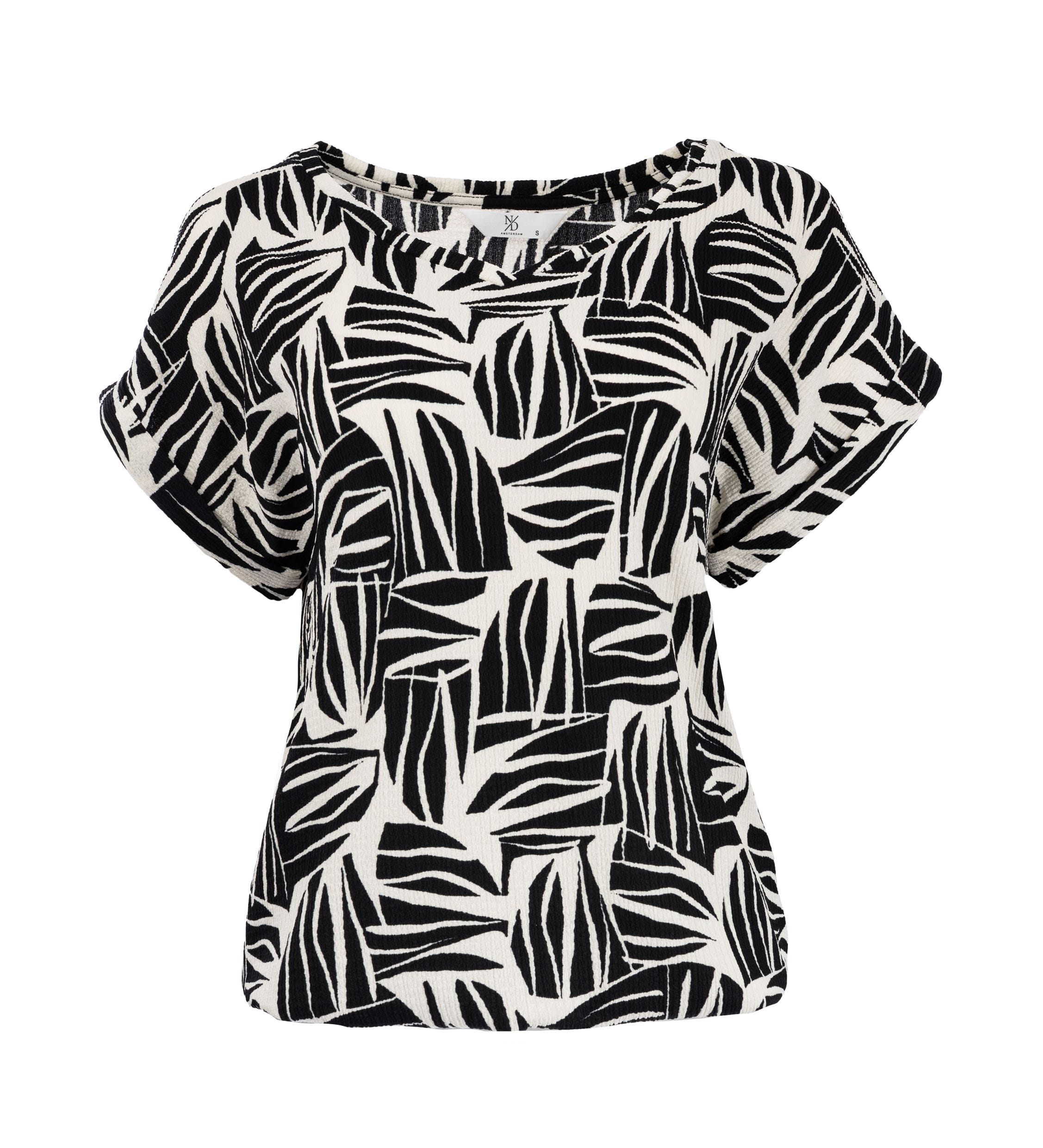 Shirt van N.E.D. in structuurstof met een all-over dessin, korte mouwen voorzien van omslag, V-hals en en een elastische zoom.