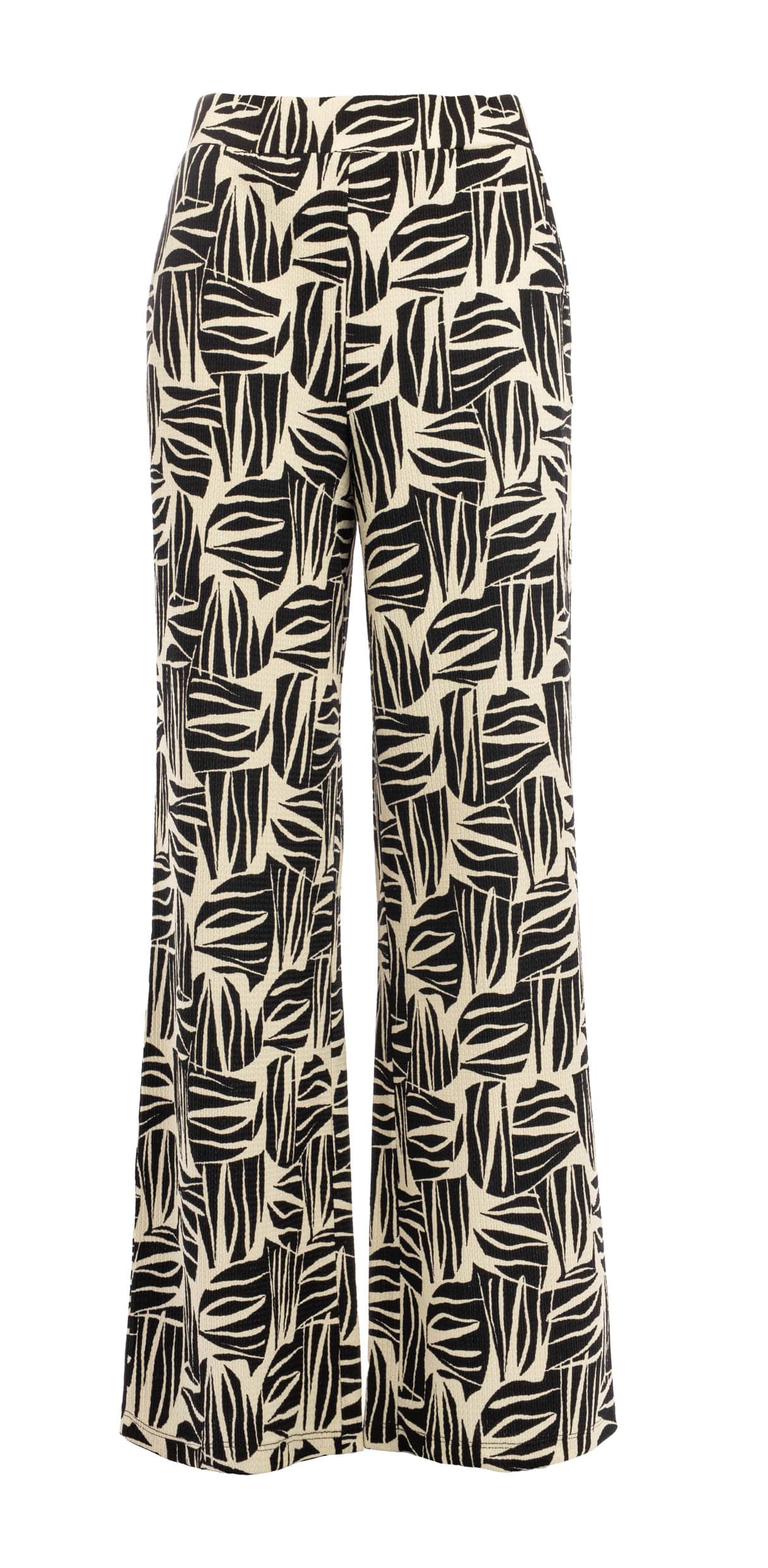 Broek van N.E.D. in een all-over dessin met wijde pijpen, elastische tailleband en steekzakken. Materiaal: Polyester 99%| elastan 1%