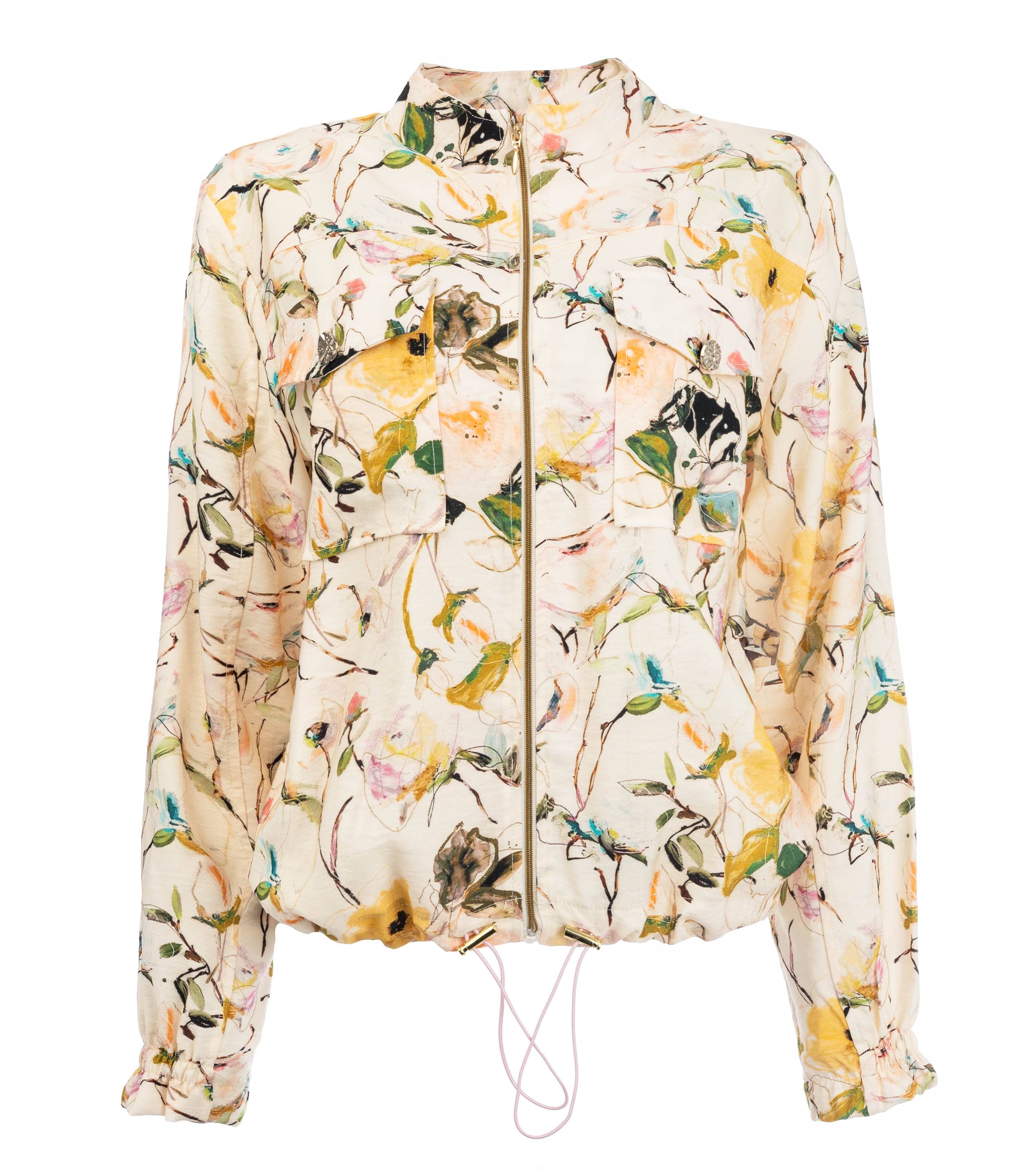 Jacket van N.E.D. in een bloemen dessin met lange mouwen, ritssluiting, opstaande kraag, klepzakken op de borst en een drawstring in de zoom.