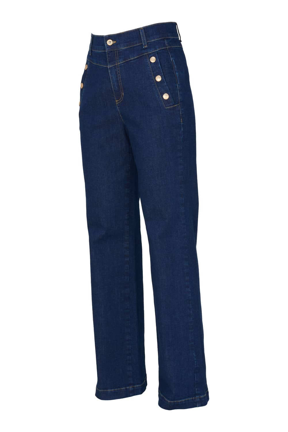 Broek van Dreamstar in een denim-look met een knoop- en ritssluiting en twee steekzakken voorzien van drukknopen. Materiaal: Katoen 98%| elastan 2%