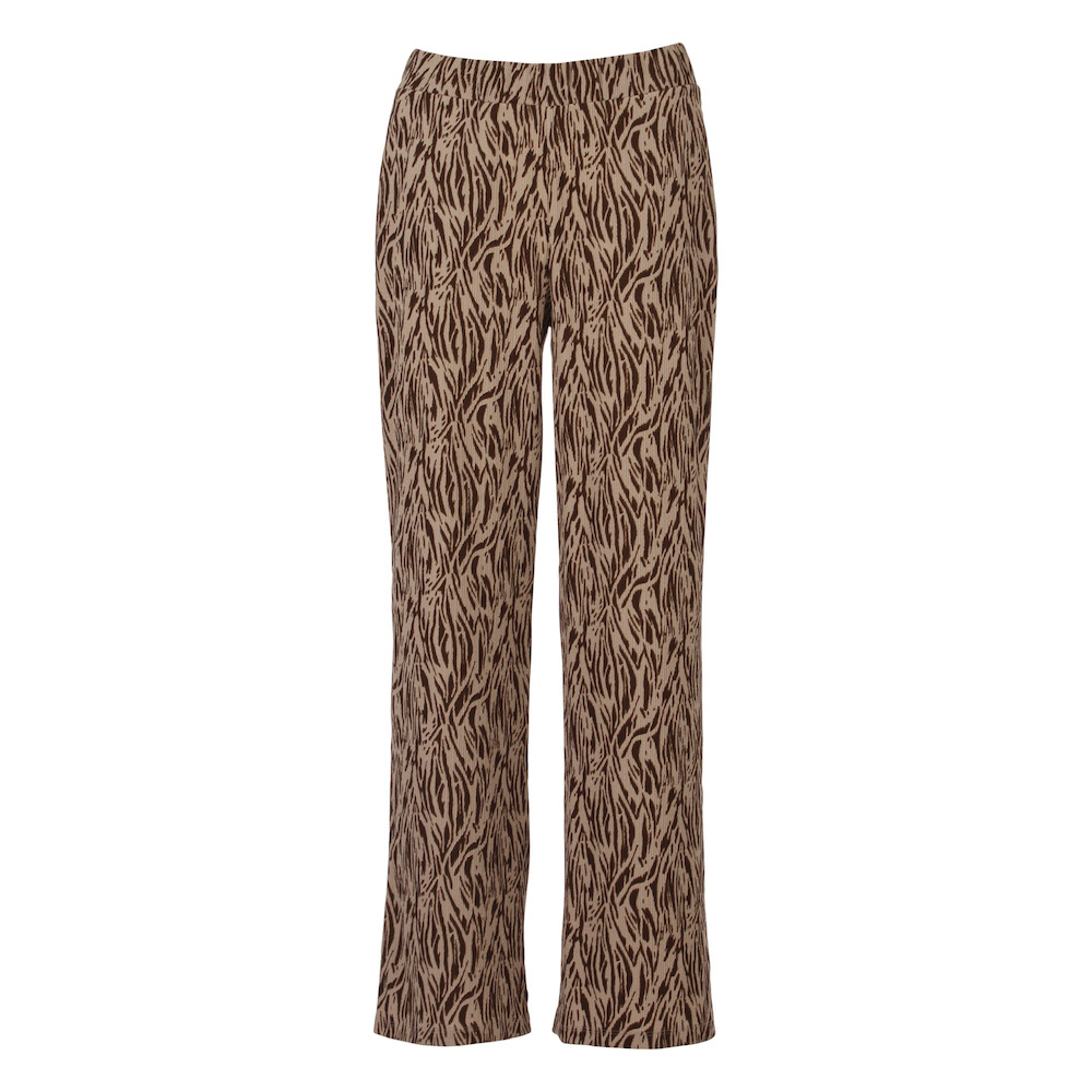 Broek van Enjoy in een all-over dessin met wijde pijpen en een elastische tailleband. Materiaal: Polyester 98%| elastan 2%