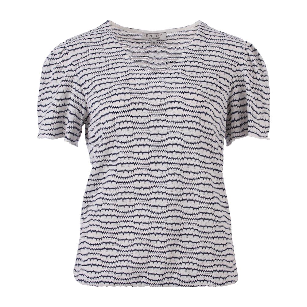 Blouson van Enjoy in een streepachtige print met een V-hals, korte pofmouwen en een elastische zoom. Materiaal: Polyester 60%| katoen 40%