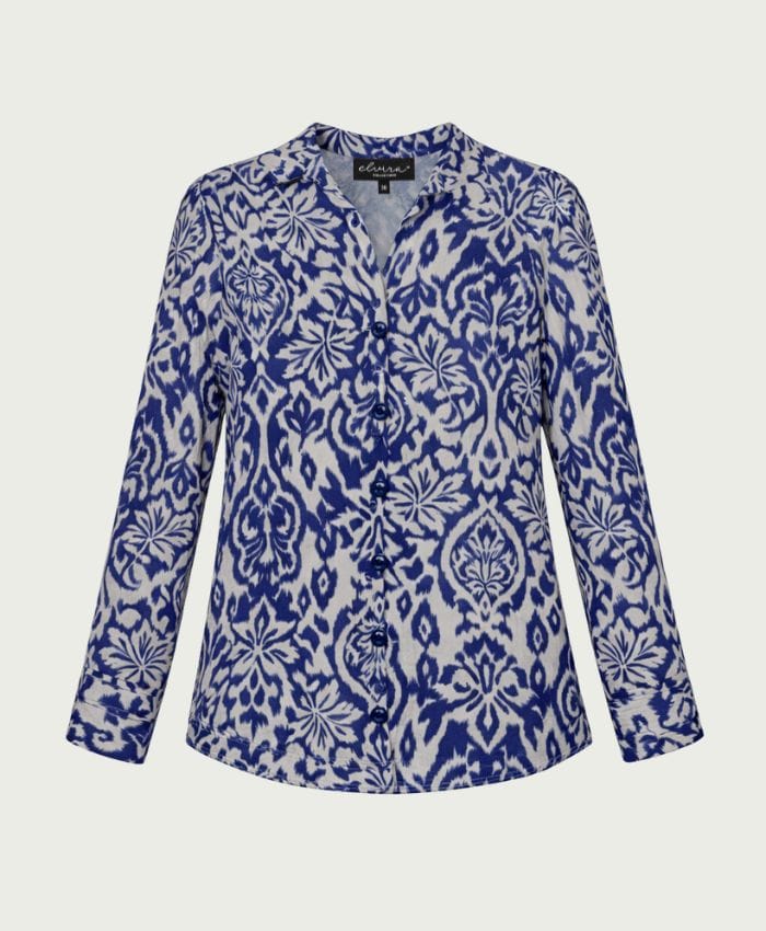 Blouse van Elvira in een all-over dessin met lange mouwen, kraag en een knoopsluiting.
