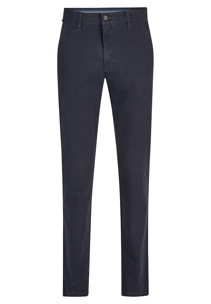 Broek van Club of Comfort met rechte pijpen, knoop- en ritssluiting, steekzakken en paspelzakken met knoop aan de achterzijde. Materiaal: Katoen 95%| elastan 5%