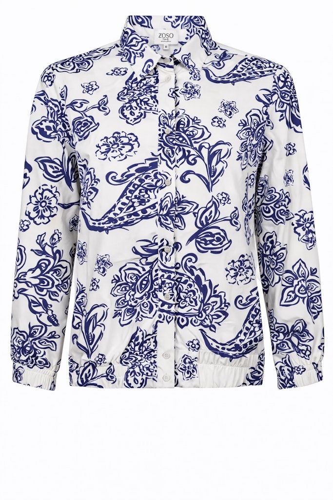 Blouse van ZOSO in travel kwaliteit met een all-over dessin, lange mouwen, klassieke kraag, knoopsluiting en elastische boorden.
