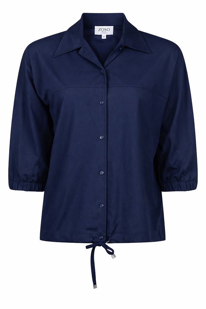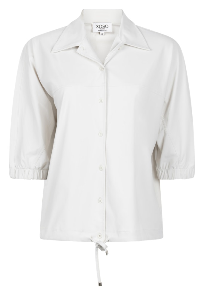 Blouse van ZOSO in travel kwaliteit met halflange mouwen voorzien van elastische boorden, klassieke kraag, knoopsluiting en trekkoord in de zoom. Materiaal: Polyamide 80%| elastan 20%